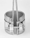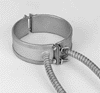 TYPE 5 BARREL NUT STRAP LEADS exit through edge, inside gap, one from each side of gap. Suggested for use on small diameter bands where leads are not subjected to strain or plastic drool. Option C only. |