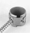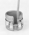 TYPE 5 BARREL NUT STRAP LEADS exit through edge, inside gap, one from each side of gap. Suggested for use on small diameter bands where leads are not subjected to strain or plastic drool. Option C only. |